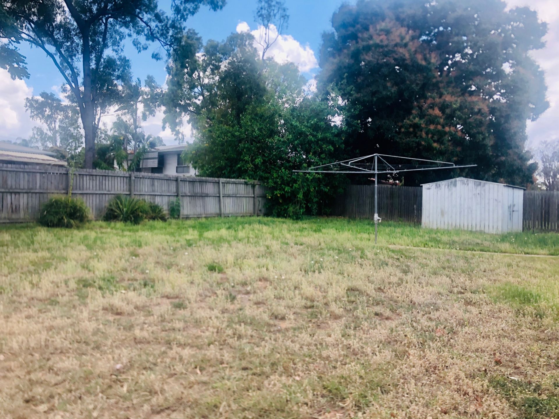 Securely fenced backyard with lots of room for kids and pets